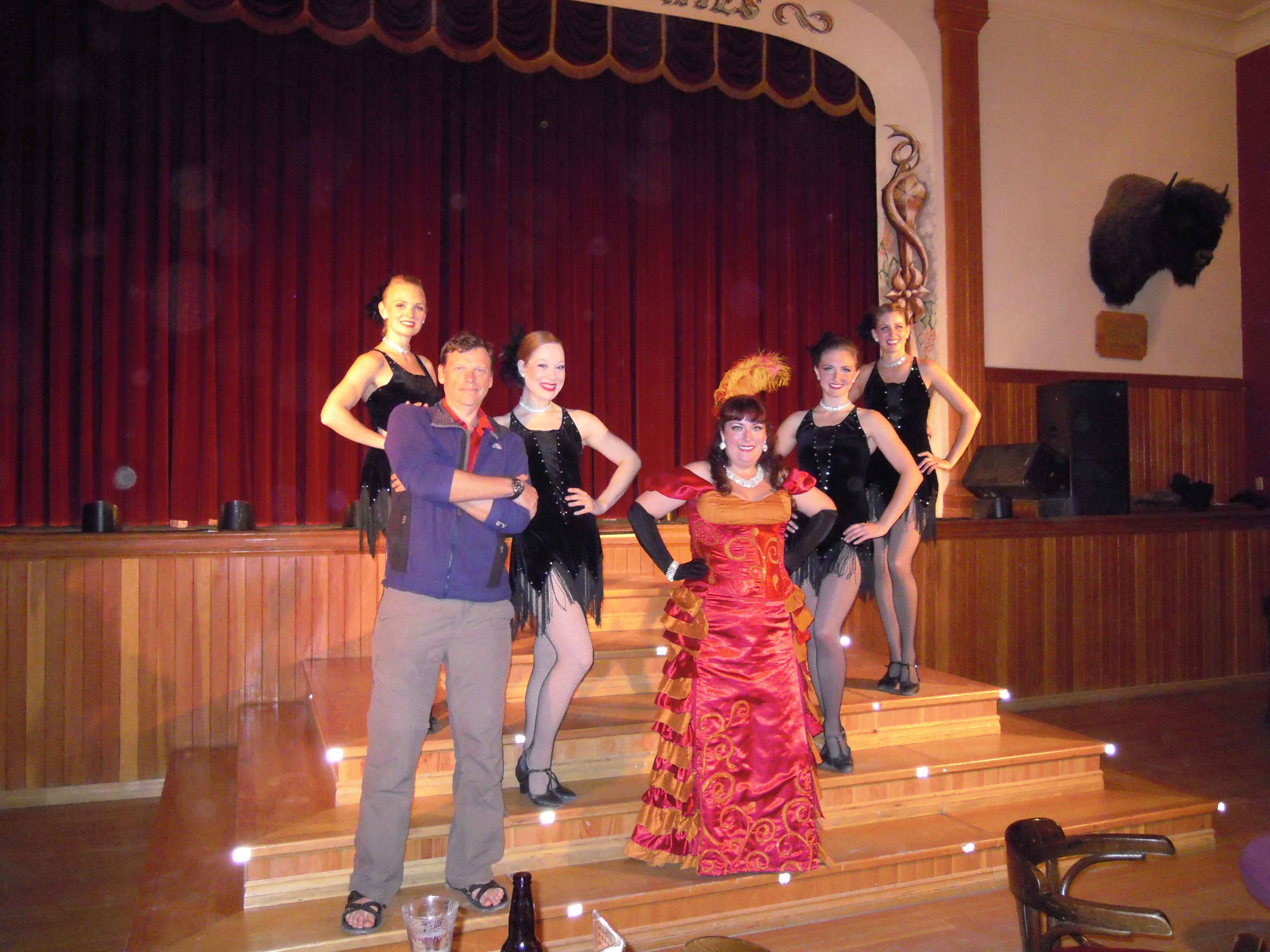 Day 26 (85km) (Dawson City – Roadside Camp): While the ‘deep tissue massage’ from Laura the Argentinean masseuse was nothing short of complete and utter torture, it appears to have done some good for the legs. Note for aging cyclists: don’t get dehydrated and do stretch once you get off the bike each day. If you don’t do this you will get lectured by Laura the Argentinean sadist as she grinds her fingers into the non-gaps between muscle and bone until you are a yelping blob of pulped flesh with only faint remnants of your self respect left intact. I won some money on the roulette table at Gertie’s Casino two nights in a row (Gamblers always fibbing about how much they win, suffice to say my winnings were right up there in the high tens). I feel for the community organisation running the place, as the gambling proceeds reportedly are fed back into community projects… on further reflection I couldn’t really give a rat’s. The showgirls will miss me terribly I’m sure (refer photo – that arm nonchalantly draped over my shoulder is not some token gesture for the tourist photos – its love!). I reluctantly checked out of the lovely Downtown Hotel and the legs spun with ease along 85km of mostly flat road. My camping technique is improving. Am now assiduously taking Bear Grills’ advice and urinating around the camp-site to discourage bears from investigating (Bear says it has something to do with testosterone in the wee). I can now pitch the tent, perform my perimeter peeing and have some pretty ordinary noodles on the boil in next to no time. So much so that finishing a ride early on camping nights leaves bugger-all to do.