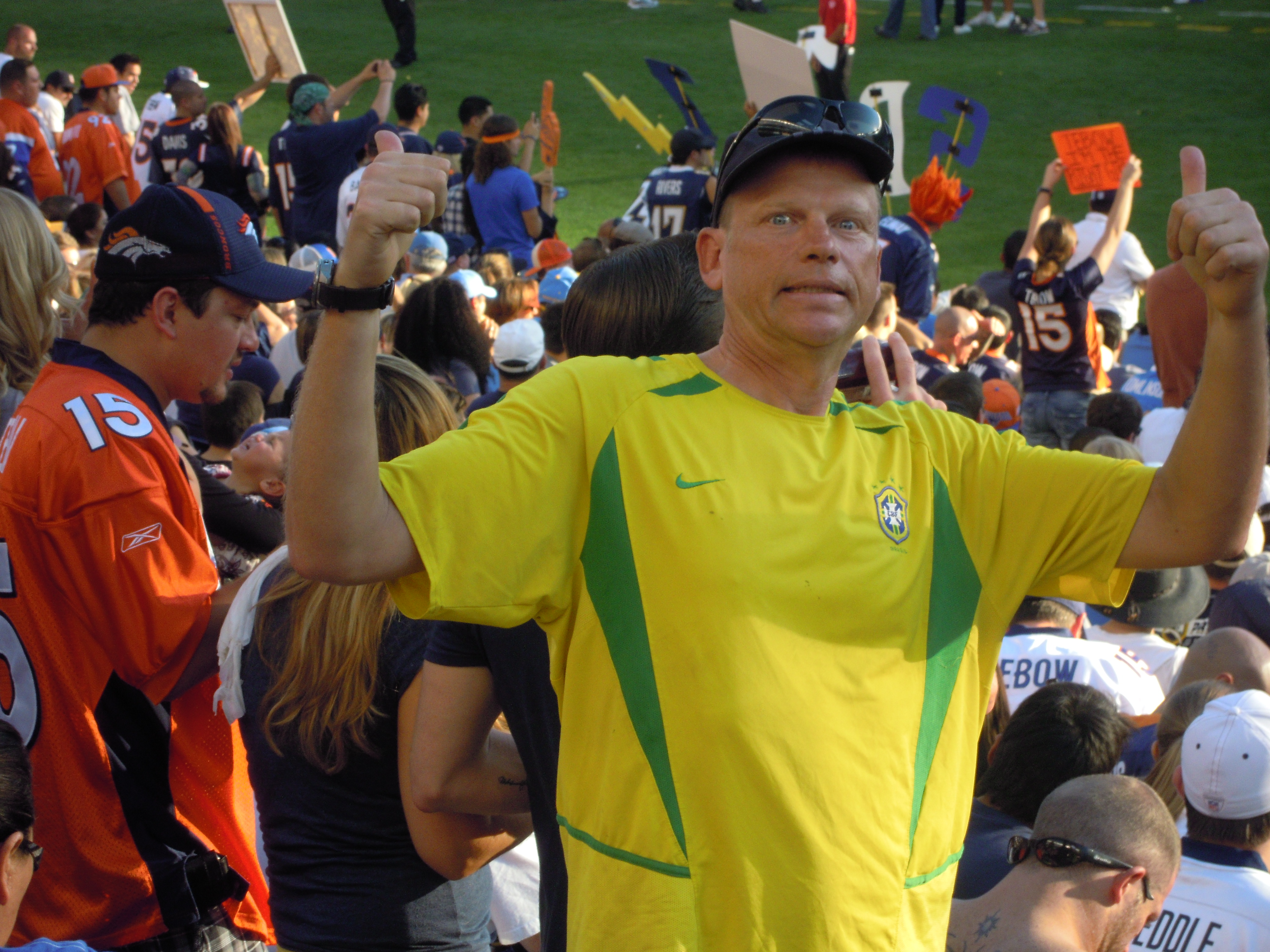 We at buff3ysbicyclingblog feel that it is far more important to celebrate the game and the theatre of it for what it is; a great opportunity to get out into the car park of a large stadium and ‘tail gate’ up some wieners. The local team is, of course, the San Diego Bustards. Odd they should name their team after the flightless Bustard yet there it is. Quickly inducted in the Denver fan hall of fame, we (the away side) taunted the hometown team as the game went into overtime and the mighty Denver Ducks inevitably exerted their authority. Oddly for a quarterback (the chap charged with the responsibility of throwing the ball), Mr Tebow, the Denver Ducks quarter back is best known for his reluctance and/or inability to throw the ball, preferring to run at the opposition (and sometimes towards his own goal line, much to the chagrin of his team mates). The very enthusiastic and charmingly attired cheer leaders (The San Diego Scrubbers) high-stepped and shook their pom-poms bravely right up until their defeat was secured. Admittedly some points were deducted from San Diego, cruelly many maintain, for having a coach called ‘Norv’ (short for ‘Norv’). To their credit the Bustards fans took the defeat in good humour, the local crowd choosing to take out their justified frustration on Coach Norv through the media at their leisure.