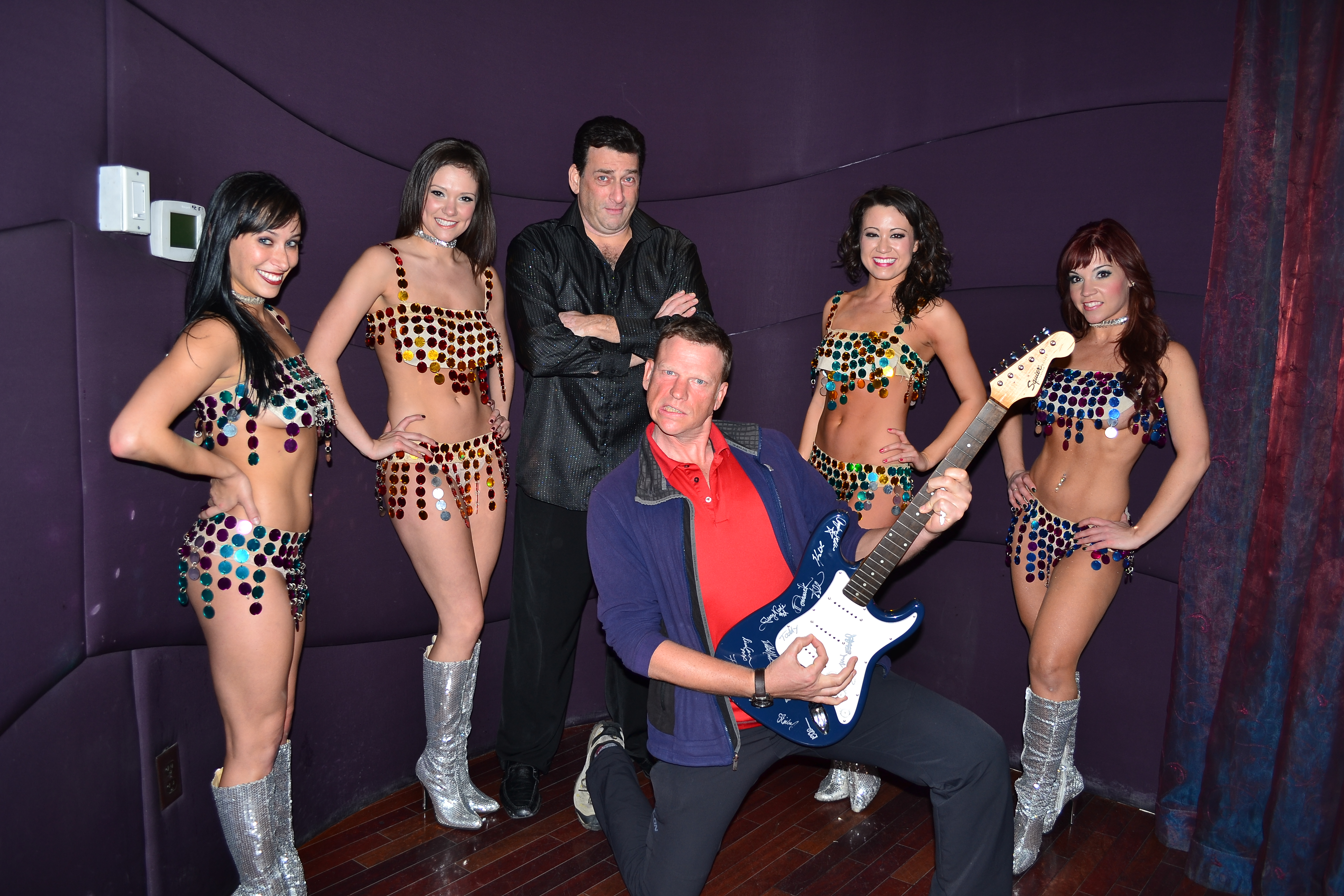 We do our level best each posting to bring you the very latest in hard-hitting social commentary; something for which this blog is becoming rightly renowned. Therefore since hitting town I have conducted some field research over at Hooters Casino to test the contention in the recent academic literature that the proximity of large breasts is a contributing factor in punters losing more money when gambling*. The RAAck n Roll Dancers are the latest sensational disrobing act to hit the Vegas strip and with the addition of your delusional correspondent, we became Buff3y & the Buff3ettes for the night (refer photo below). Regrettably we had to let the Robert De Niro impersonator into the shot as he is the slightly retarded brother-in-law of my girlfriend (second from right**). ( * it does) (**if only it were half true)