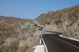 The road has turned inland toward the spine of the Baja peninsula climbing through a winding mountain pass (refer photo) and then back onto the long flat desert track for some more km churning. The climb of the morning (from the coast up to 430 metres) left me a bit weakened and I compounded the problem by not food fueling correctly so the afternoon became more difficult than it might have been otherwise.
