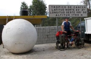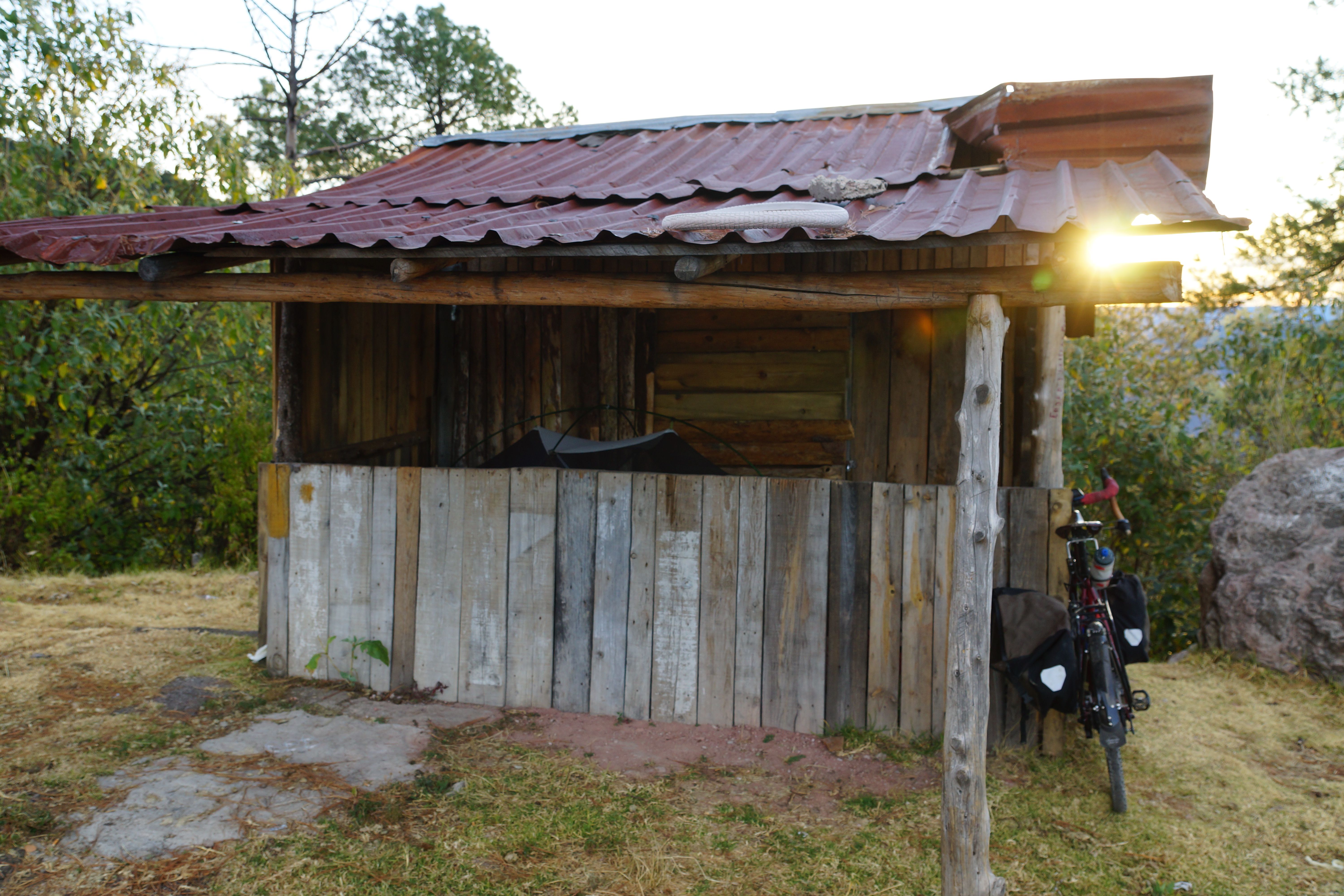 Another 1,400 metres all up today: from 1,200 to 2,600 metres. Yesterday and today have been hellish climbs; possibly some of the hardest of this bicyclists illustrious career. Endless switch backs up and up admittedly through some beautiful scenery but continual steep lifts kept your correspondent panting away in ‘granny gear’ for the bulk of the day, a stately 6km an hour being the best that I could muster grinding ever upward. Passed north across the Tropic of Cancer (refer blurry photo). Just on dusk, for some bizarre reason thought that it would be a good idea to see if there was any food or lodging in a small hamlet tucked away down the hillside below the road. Of course there was none of either and I had wasted precious time and quickly depleting energy going down a dirt road to discover what should have been self-evident. There are various theories along the road as to how far it is to a restaurant and a town (these estimates vary widely as usual) so on sighting a tiny hut-cum-shop with all the appearance of being abandoned, this became my home for the night (refer photo). With the tent tucked away out of site in the front area of the hut it was good enough yet the trucks plied up and down the road through the night engaging the engine brakes with scant regard for the possibility of there being a cleverly concealed hardcore adventure cyclist just next to the road in the front of a hut.