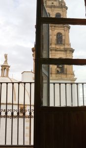 The Hotel Plaza Catedral is a converted monastery. The monks are all gone now replaced by more contemplative and philosophical folk like touring cyclists. My particular cloister directly overlooks that huge cathedral on the main square. You really couldn’t hope for a better location. I even have a small writing desk (refer Photo) where I can alternately rant away at my blog or whip my back with cat-o-nine tails into a bloodied shredded mess at my leisure. It’s got to be the best hotel of the trip so far (OK, I have stayed in some dives) and well worth the splurge of US$25 a night.