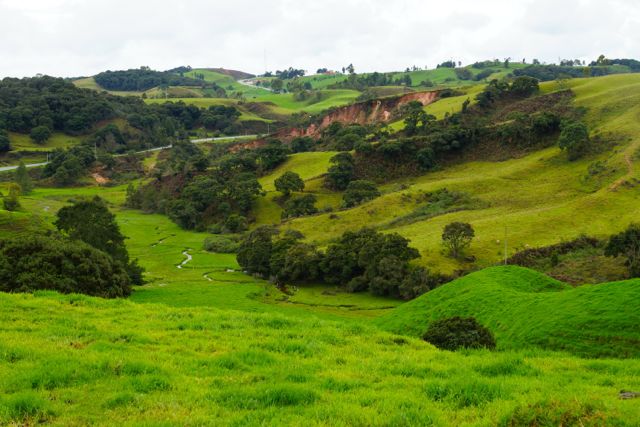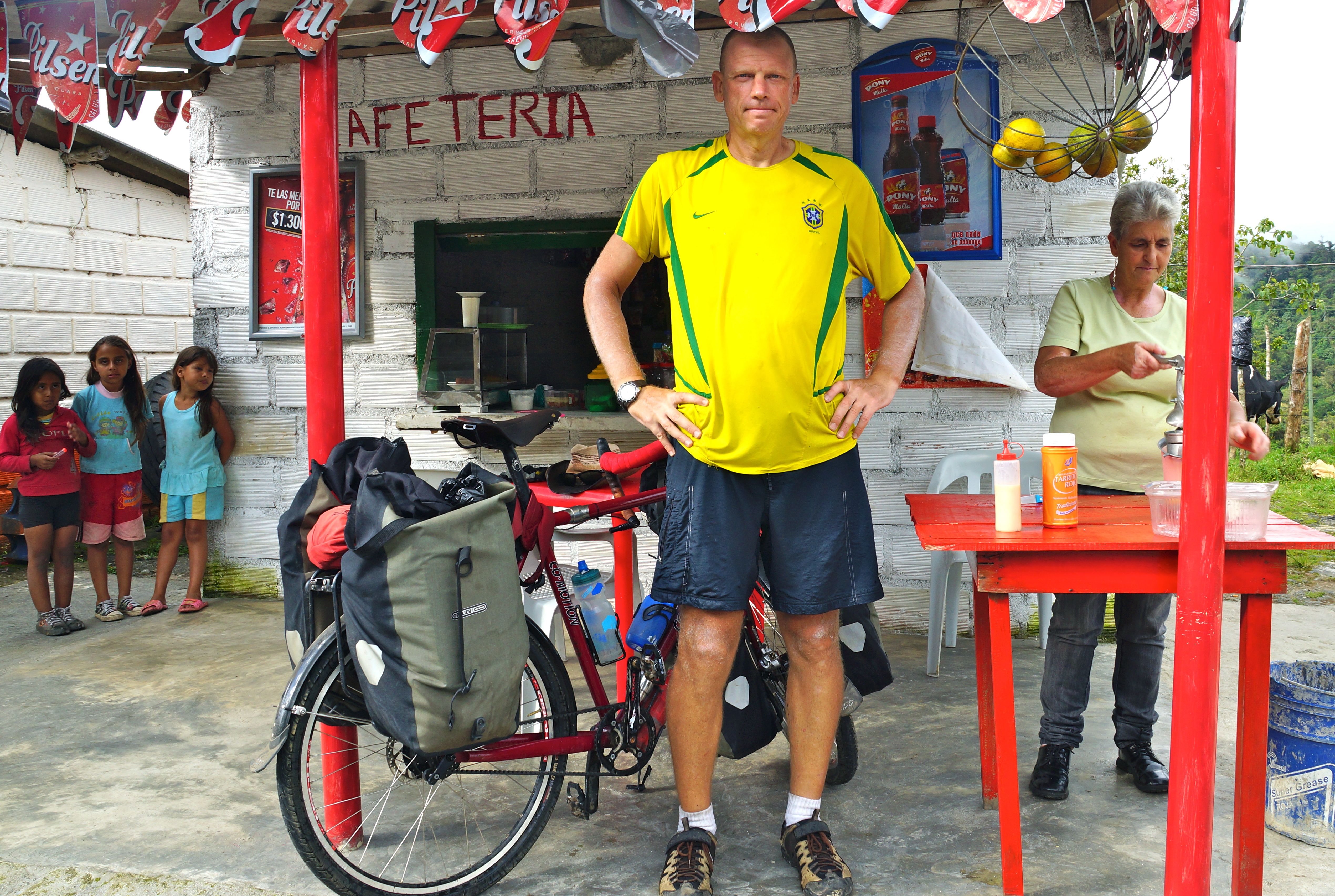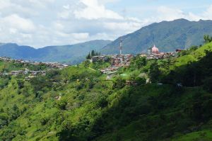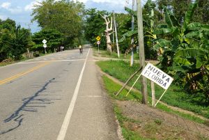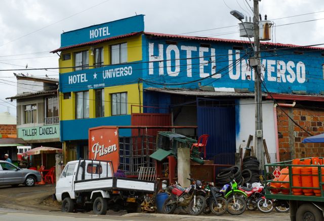 The road south of Cartagena is the beginning of the ride through South America. Its quite a thrill to be heading south on the final chunk of land for this trip, even though its not really a piddling chunk given that it will take a good few months to get all the way to the bottom. The ride towards Medellin is a pleasant flat run for the first 470km and then a big climb over 2,780 metres before the plunge into the valley to Medellin. The road is very good with a nice wide shoulder, not much traffic and people along the road side who are very friendly indeed. The little towns along the road provide all of the freshly squeezed orange juice and food (rice, beans and beaten/tenderised to death steaks) that a touring cyclist could ask for. At Causacia I join the quickly flowing Rio Causa which I follow up-stream for a day before crossing at Valdivia for the huge mountain climb between here and Medellin. Caucasia is a pleasant town for the night with a bit of a rough edge from the mineral prospecting from the river silt so there is a definite army presence in town and a profusion of ore traders and pawn shops. The roadside scenery is lush and beautiful with rolling fields of cattle in what look like neat affluent country estates. As the road rises into the mountain range the scenery is lovely without being stunning but the towns become more and more beautiful as they cling onto the hillsides (especially Yarumal). The Colombians are laid back and engaging along the side of the road with little of the nauseating “hey Gringo!’” etc of most of Central America. People are very forgiving of my terrible Spanish and they persevere even when its pretty clear that I have little or no idea what is being said – i.e. most of the time.