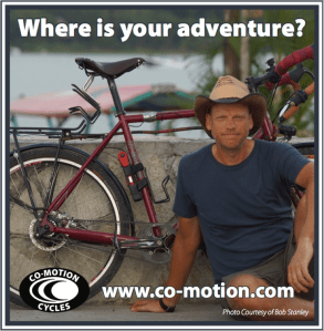 I must add to this post (again, in the near-constant pursuit of self-glorification) that your most humble correspondent has now become the pin-up boy for custom made bicycle manufacturing. Yes, out go the scantily clad, shock absorber fondling busty scrubbers in barely visible swim suits and in comes your T-shirt clad correspondent sitting on his arse next to his bike! I balked (this time) at the idea of a series of nudes, but what the hell – if the coming Andes steel-up the buns sufficiently I might reconsider, I just hope that the good folk at Co-Motion Cycles will be able to handle the influx of orders!