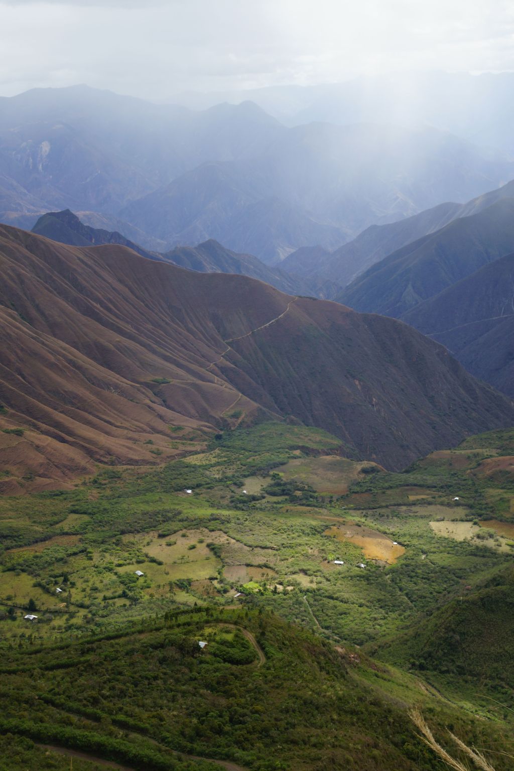 What was supposed to be an easy day of a mere 38km to Tingo and a bus ride up to the ruins at Kuelap somehow turned into a night riding test of endurance. There are two ways up to Kuelap; one is a gentle climb of 1,300m over 35km. The other is a steep walking track of 10km. With no mini-buses to be had I decided to leave the bags in Tingo and do the 35km ride up to the fortress. This was all well and good and the time at the top was successfully spent photographing llama and deepening my appreciation of pre-Incan architecture. The pivotal moment for the day came when I decided to return via the 10km foot-track. Little did I know that this track, with the addition of a little rain-water, would become a quagmire of mud that was more clay like glue than mud. Before very long the bike was completely encased in the goo and the wheels absolutely refused to budge as the glue set hard around them. The afternoon drifted into night and the likelihood of being stranded on the hillside started to become a very real possibility. On this descent I also managed to chalk up my third crash of the trip (Mexico; truck avoidance, Honduras; steamroller avoidance. Peru; face plant in a bush). The major damage was to my legs in terms of fatigue in that lugging a reluctant bike down the steep hillside for 10km pretty well did for the old legs. The next day’s ‘easy’ ride of 48km gently rising along the river valley to Leymebamba therefore became a bit of a test as the legs were utterly toasted.