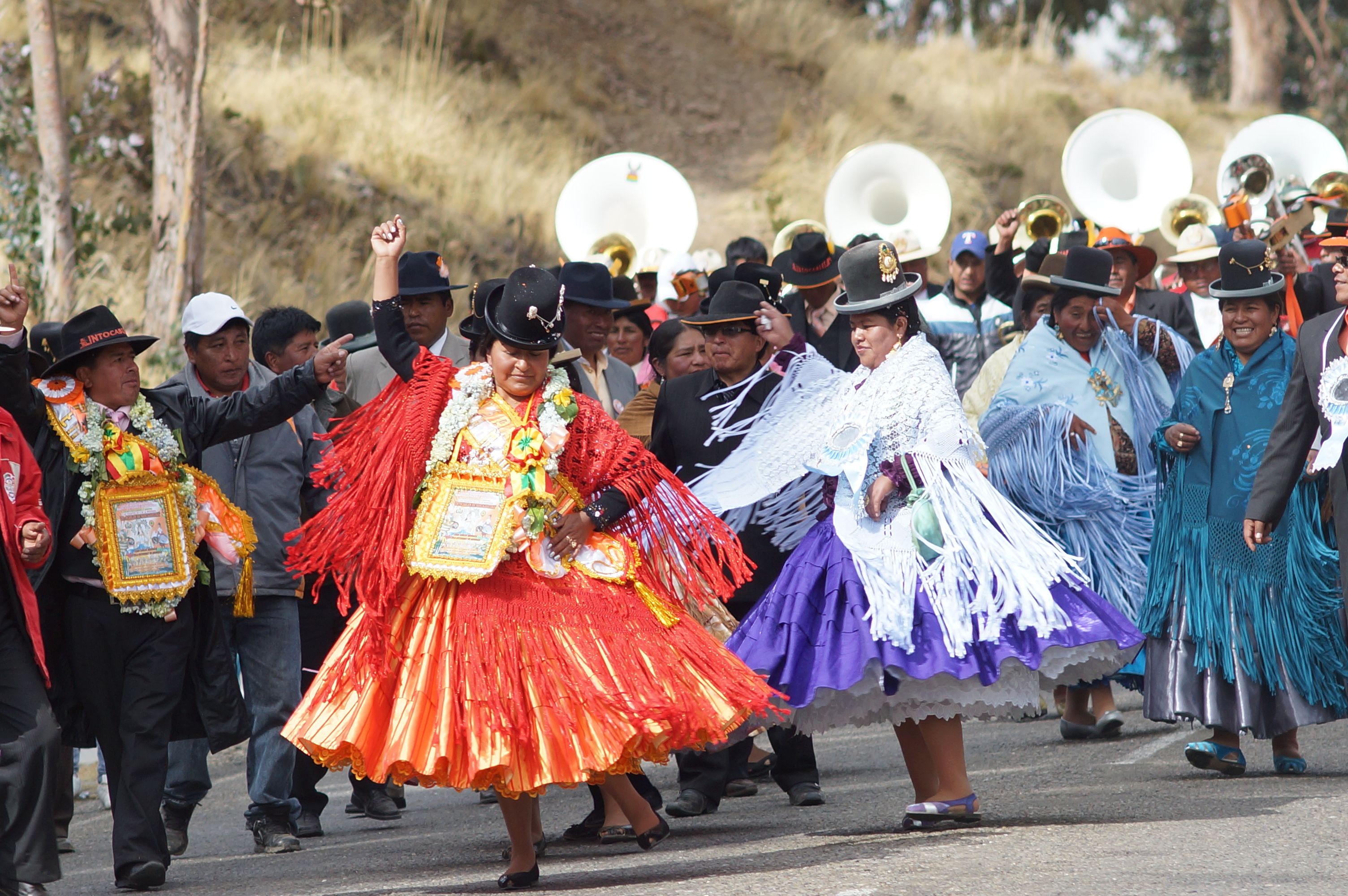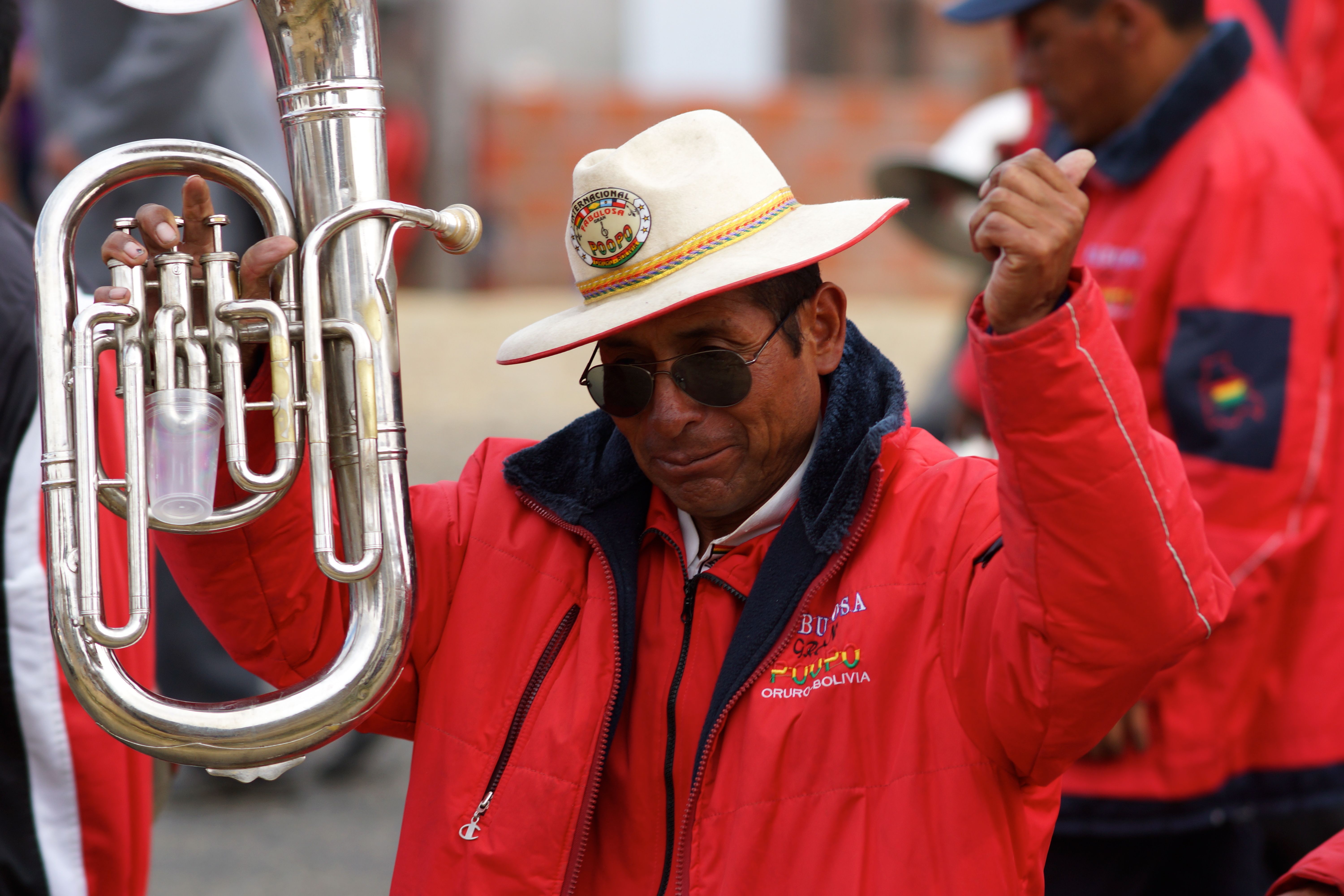 From Copacabana (which in reality proved less enticing than it’s name sake in Brazil) it was a lovely ride across to the north shore of the lake towards La Paz. Was lucky enough to happen upon a large fiesta on the road, the women all decked out in their finest bowler hats and multi-layered skirts twirling away merrily and the men-folk spinning (truck-shaped) clackers while shuffling from side to side in a cleverly synchronized dance motion that almost concealed the fact that they were all tanked to the eye-balls. Three brass band’s blurted away with gusto the sound melding into a vast cacophony of trumpet, euphonium and sousaphone (of no particular tune). One band had six sousaphones, no less! Great stuff! The atmosphere has certainly changed from a few km back up the road and your correspondent had the opportunity to dust off his trumpet skills, adding yet another layer of dissonance to the enthusiastic noise.
