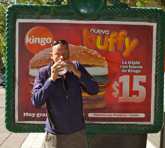 In Mendoza however, the gastronomic delight continues well beyond the BBQ grill. In honour of my bicycle trip the local owners of Kingo Burgers have in-launched The ‘Buffy’ Burger. It has all the flavour that people the world over have come to expect of the original Buffy Burger. Now, however, it’s ‘New’ and has an extra layer of Grade E – ‘fit for human consumption’ meat and a bigger egg! Lovely!
