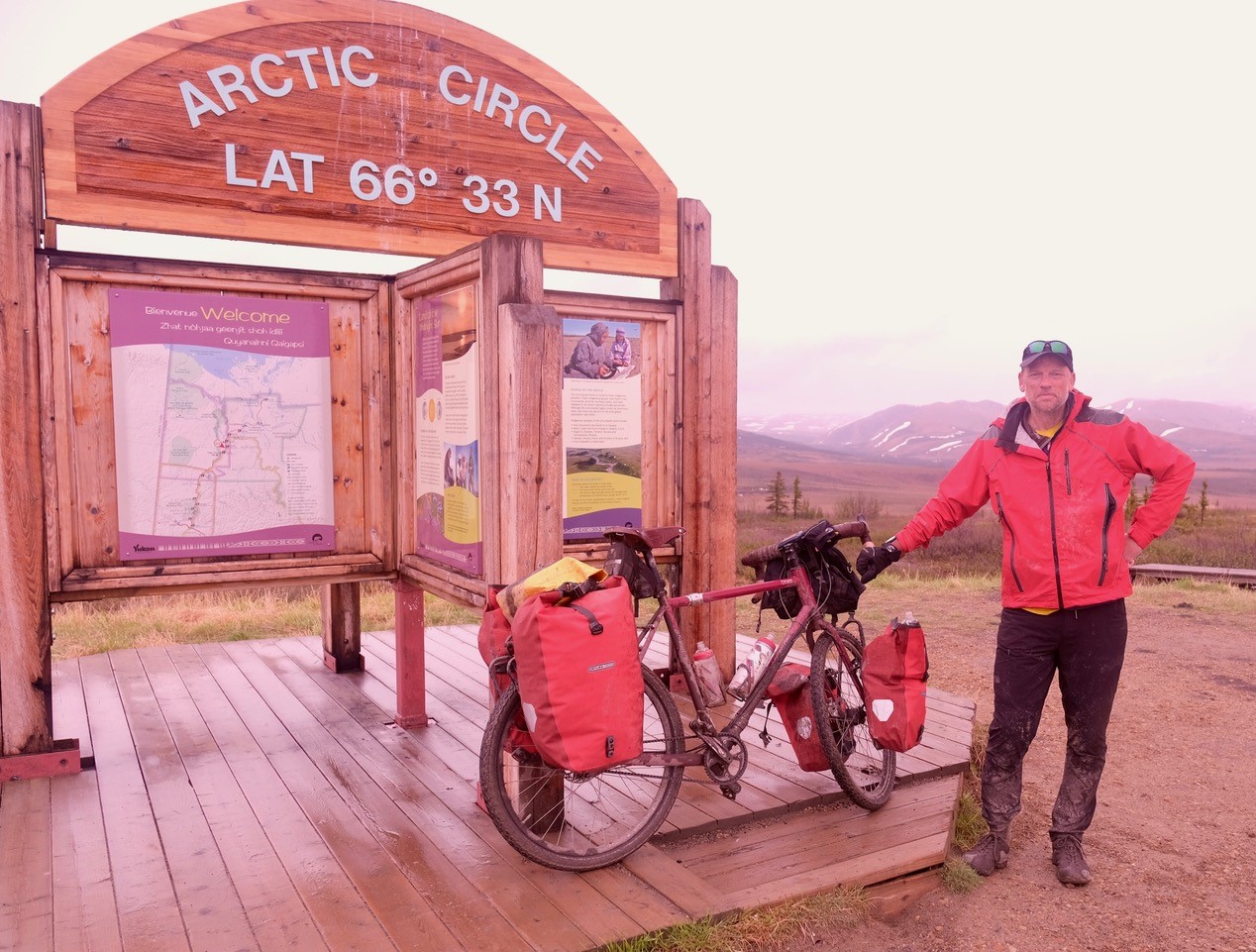 The road continues to be a joy as the ferries that cross the Mackenzie and Peel rivers have not started operating for the summer season yet due to ‘the thaw’. As a consequence there is no vehicle traffic at all apart from locals and the occasional territorial truck; maybe half a dozen a day. So I pretty well have the road to myself every day! Perfect timing. Above is the (mandatory) photo at the marker for the crossing southwards over the Arctic Circle (‘pink-nosing’ as opposed to the ‘blue-nosing’ of naval parlance I suggest).