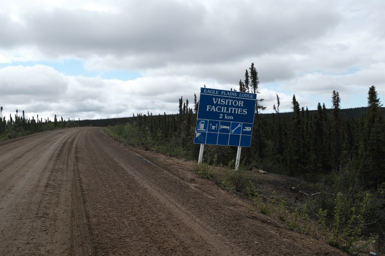 Rarely in the history of international bicycle touring has a sign-post been greeted with more joy and unbridled relief than this sign 2km out from the lovely Eagle Plains restaurant and lodge (170km south of Peel River crossing).