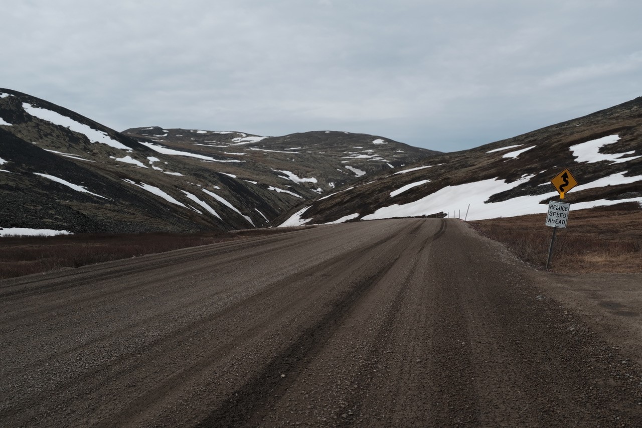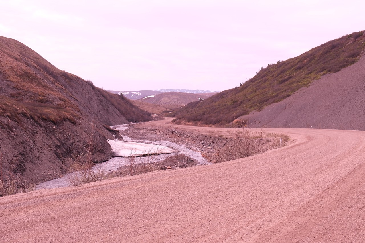 The barren snow strewn Richardson Mountains in Northwest Territories. Vry beautiful but his was an ugly little pass.