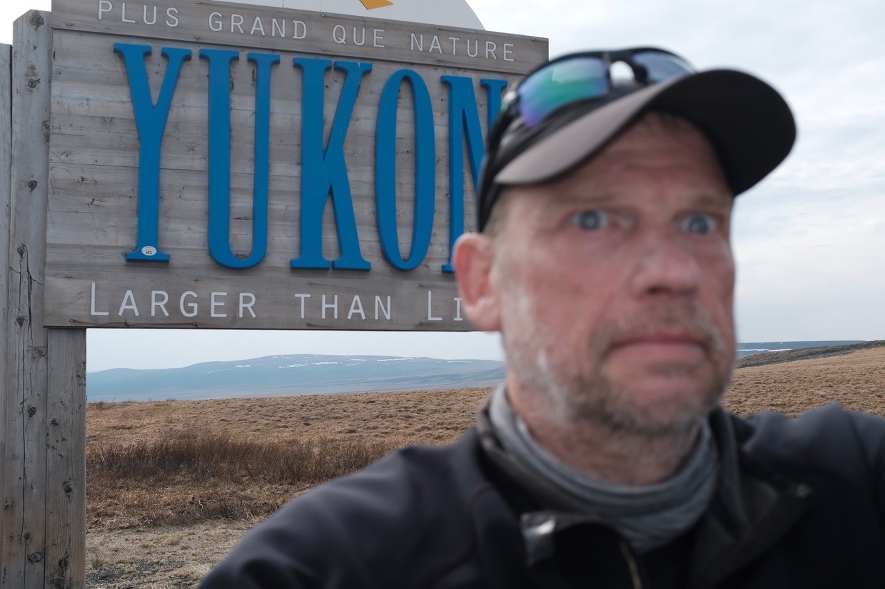 Crossing out of The Northwest Territories into Yukon with a stunned selfie.