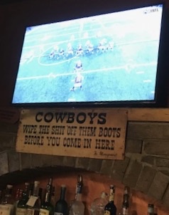 “COWBOYS WIPE THE SHIT OFF THEM BOOTS BEFORE YOU COME IN HERE”. Here-here!