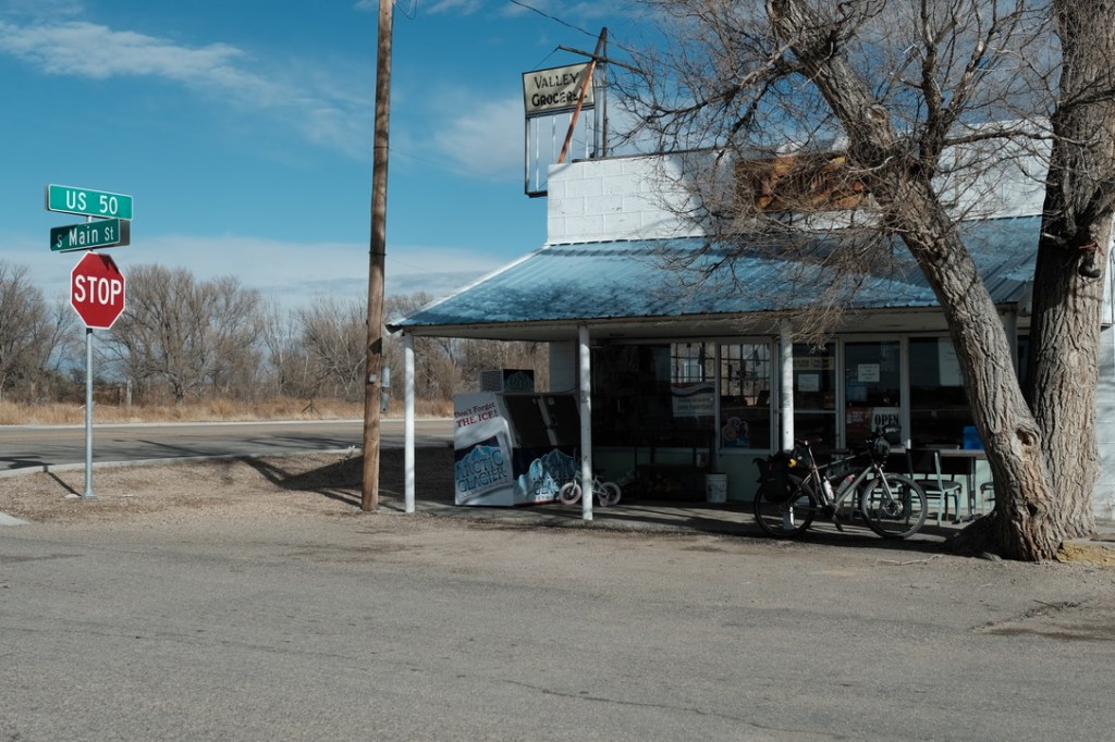 A little cafe out along US 50 somewhere (with bicycle).