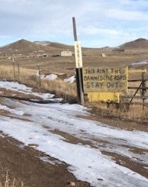 “THIS AIN’T THE DAMMED LAKE ROAD. STAY OUT.” Best not venture down this particular road if you know what’s good for you.