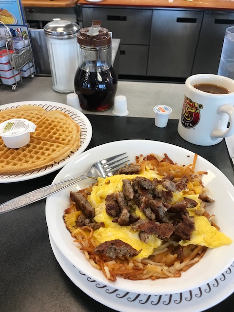 Head into Waffle House for a major hash-brown experience that is great cycling sustenance.
